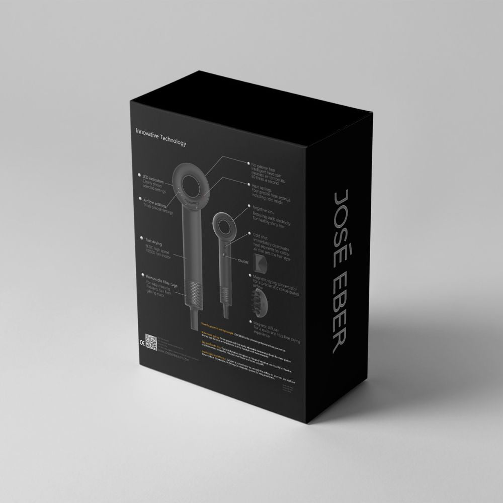 De José Eber Elite Nero High Speed Föhn belichaamt de perfectie in haardrogingstechnologie. Met zijn krachtige BLDC-motor en lichtgewicht design staat deze föhn garant voor een snelle en efficiënte droogsessie, verpakt in een stijlvol, hoogwaardig design.