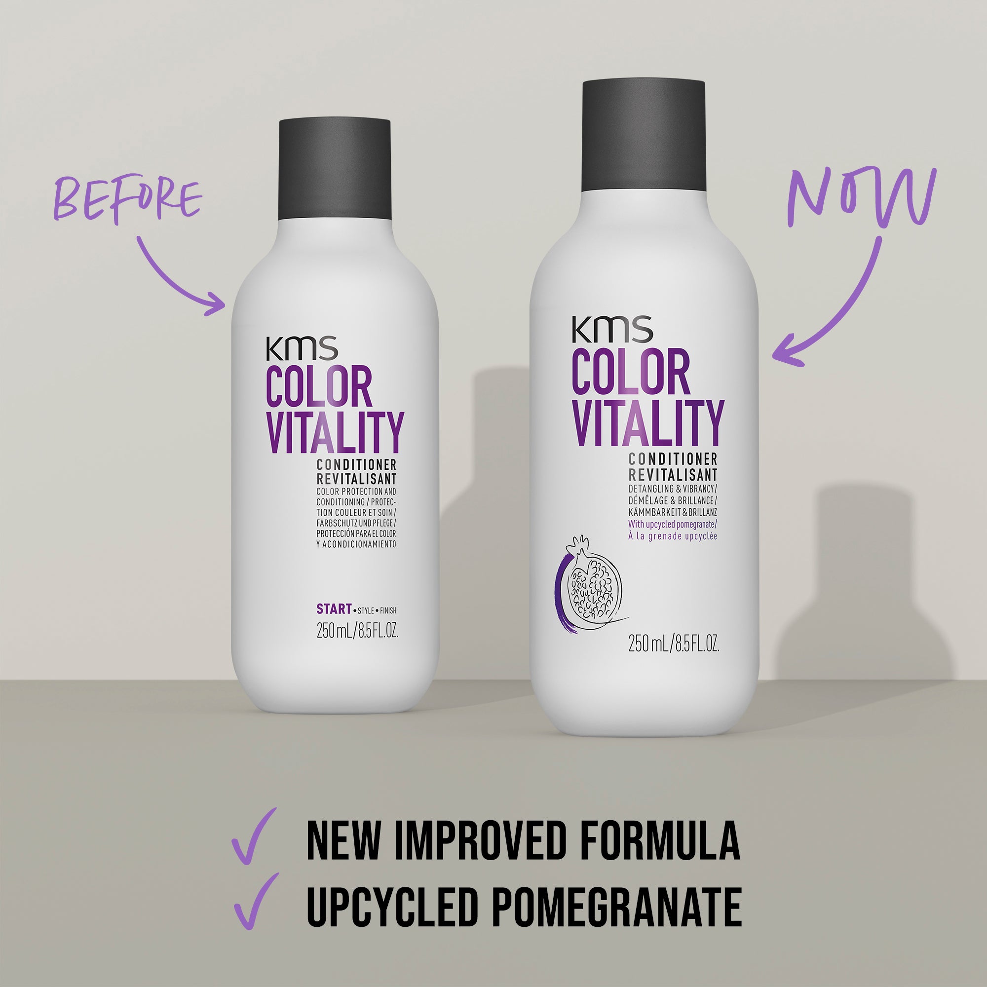Hydraterende conditioner speciaal ontwikkelt voor 3 keer langer kleurbehoud van gekleurd haar. KMS Hair Colorvitality Conditioner is speciaal ontwikkelt voor gekleurd haar. De conditioner hydrateert en herstelt de glans van gekleurd haar. Bij gebruikt van de conditioner behoud de kleur tot wel 3 keer langer dan wanneer je het met een normale shampoo en conditioner wast. Zo kan jij extra lang van je gekleurde haar genieten!