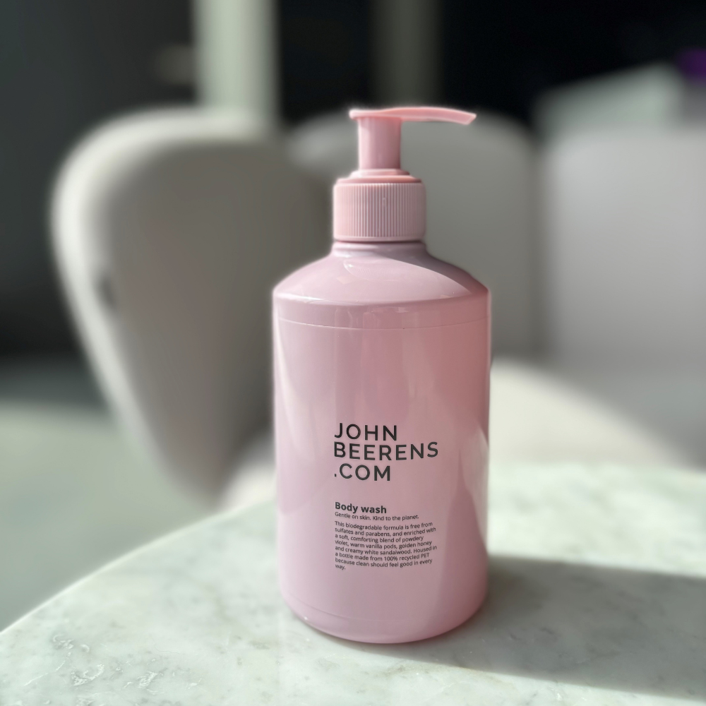 John Beerens Body Wash is een milde reiniger die zacht is voor de huid én vriendelijk voor de planeet. Deze biologisch afbreekbare formule is vrij van sulfaten en parabenen en verrijkt met een warme, levendige geurcombinatie van poederige viooltjes, romige witte sandelhout, gouden honing en zachte vanillepeulen. Zo verandert jouw dagelijkse douche in een puur verwenmoment.