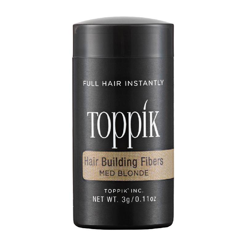 Toppik Hairbuilding Fibers Medium Blonde is een innoverende poeder die ideaal geschikt is voor mensen met zichtbaar dunner wordend haar. Dit product is dus zowel voor mannen als vrouwen. Toppik Hairbuilding Fibers is gemaakt van minuscule Keratine microvezels die in natuurlijk haar ook zitten verwerkt. Wanneer Toppik Hairbuilding Fibers Medium Blonde wordt aangebracht op het haar zullen duizenden minuscule micro haarvezels zich mengen met het natuurlijke haar. Door middel van statische elektriciteit hechten de vezeltjes zich gemakkelijk en snel aan het eigen haar zodat ze de gehele dag blijven zitten. De micro haarvezels geven niet af en schilferen of irriteren niet. Het is na fixatie bestand tegen wind, regen en transpiratie. Het is ook erg makkelijk uit te wassen met een shampoo. Toppik Hairbuilding Fibers Medium Blonde is verkrijgbaar in vier maten. Ook is het te mengen met andere kleuren van Toppik Hairbuilding Fibers om de ideale haarkleur te krijgen die bij het natuurlijke haar past.