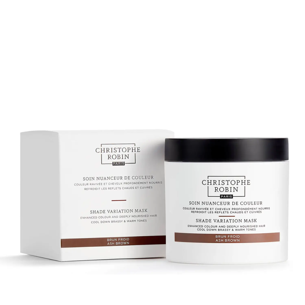 Het kleurhervattingsmasker van Christophe Robin versterkt de natuurlijke tint van het haar, elimineert de koper en roodachtige tinten in het haar. Wat zorgt voor een frisse en assige bruine haarkleur.