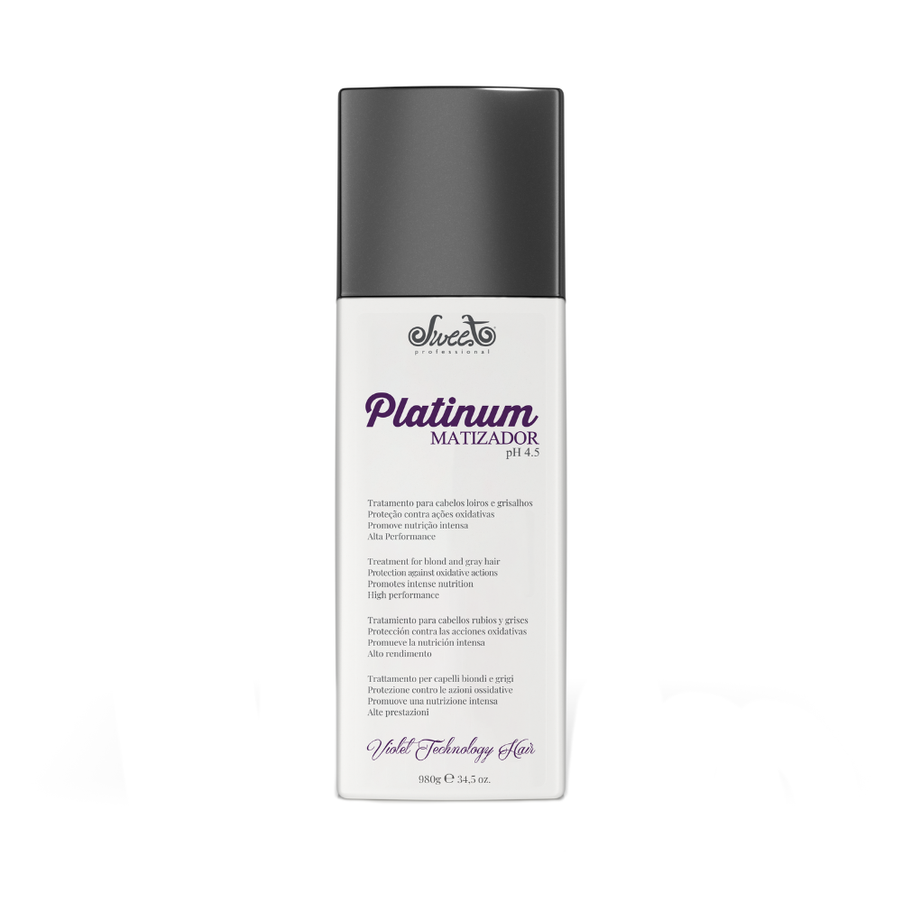 Het Platinum Matizador Professional Blond Mask van Sweet Professional is een intensief verzorgend zilvermasker met krachtige Violet Technology, speciaal ontwikkeld om ongewenste gele tonen in blond, grijs en wit haar te corrigeren en de kleur helder en koel te houden. Dankzij de combinatie van geavanceerde violetpigmenten met avocado-olie en D-panthenol, werkt het masker diep in de haarvezel om het haar te neutraliseren, te versterken en te herstellen. Tegelijkertijd biedt het bescherming tegen oxidatieve schade en verlengt het de levensduur van de haarkleur, met een zachte en glanzende finish als resultaat. Dit masker is ideaal voor wie het maximale uit zijn blonde of grijze haarkleur wil halen, zonder het haar te verzwaren.