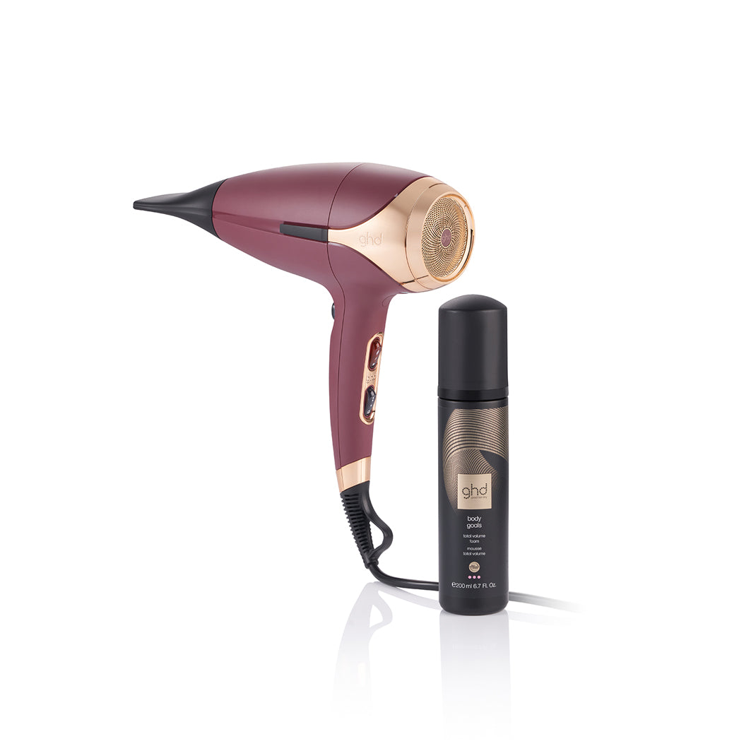 Droog en style je haar in een handomdraai met de indrukwekkende professionele föhn van ghd; de ghd helios Plum!