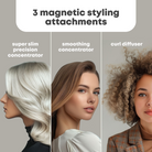 1. Bevestig het gewenste opzetstuk (concentrator of diffuser) en zet de haardroger aan.