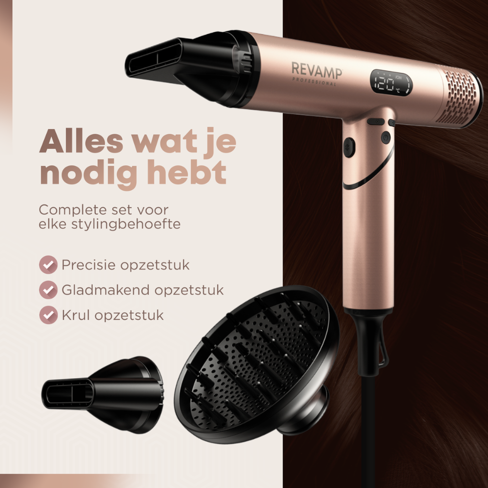 Na gebruik van de Revamp DR-6400GD voelt het haar zijdezacht aan, met een natuurlijke glans zonder frizz. Het haar blijft gezond en glanzend, met een professioneel gestylede look.