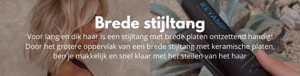 Bij het gebruik van een brede stijltang raden wij altijd aan om een hittebescherming of serum te gebruiken. Naast de bescherming van het haar is het ook goed om eens te kijken naar een toolhouder om jouw brede stijltang in te bewaren of te gebruiken wanneer de stijltang nog warm is. Benieuwd naar de adviezen die wij vaak geven over stijltangen? Lees ons advies wat betreft stijltangen.
