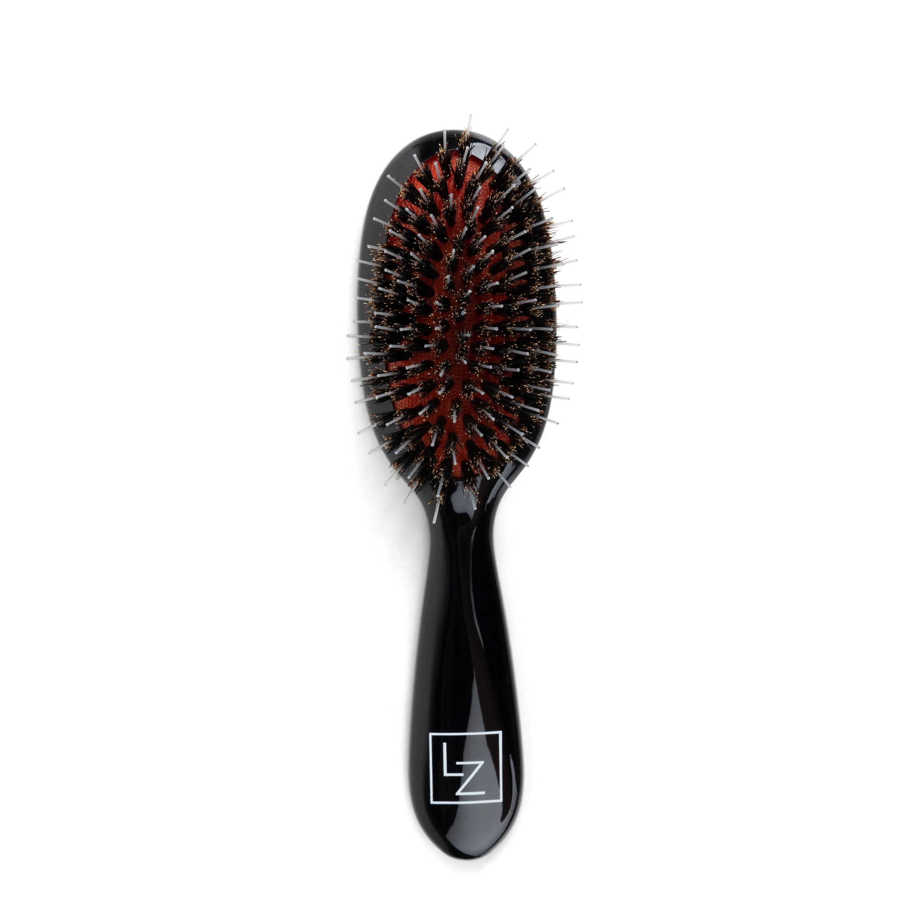 The Brush is ontworpen voor dagelijks comfort en optimale verzorging voor je haar. Deze hoogwaardige borstel combineert natuurlijke zwijnenharen met verlengde, flexibele nylon pins voor een effectieve en zachte borstlervaring. Ze zwijnenharen verdelen de natuurlijke oliën vanaf de haar aanzet tot in de punten, wat zorgt voor een extra glans en een gezondere haarstructuur.