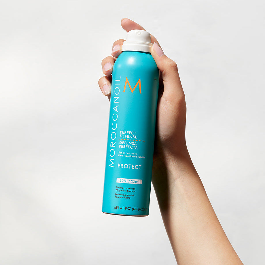 Ontdek Moroccanoil Perfect Defense, een gewichtloze, droge spray die het haar beschermt tegen hitte.