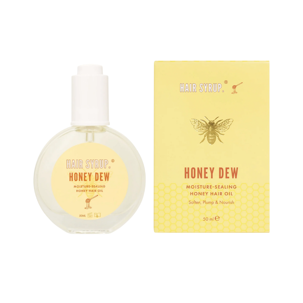 Hair Syrup - Honey Dew is een ultralichte leave-in haarolie met een droge textuur die je haar hydrateert, verzacht en beschermt. De olie werkt als primer op nat haar om vocht vast te houden en als finisher op droog haar om pluis te temmen en dof haar te verfrissen.
