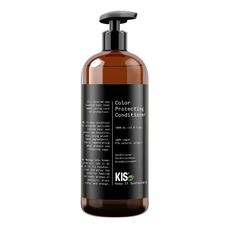 Met de KIS Green Color Protection Conditioner kun je gekleurd en geblondeerd haar tot in de puntjes verzorgen. De conditioner zorgt voor een beter beschermde en versterkte haarkleur en hydrateert het haar. De UV-filter beschermt het haar op zonnige dagen. De conditioner laat het haar meer glanzen, voorkomt dat het haar breekt en doordat het product tarweproteïne bevat wordt het haar geregenereerd. Dit product is 100% vegan en bestaat voor 97% uit natuurlijke ingrediënten. De aroma van patchoeli, zwarte orchidee en sinaasappel laat je haar daarnaast ook nog eens heerlijk ruiken!