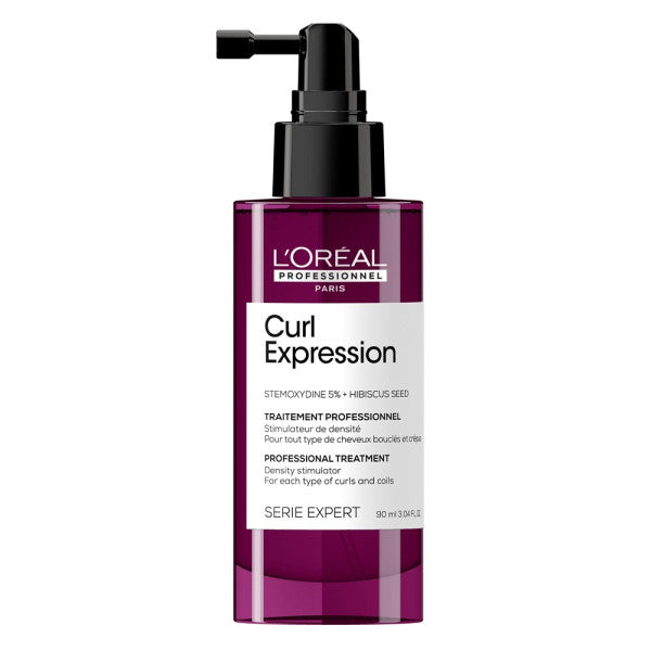 L’Oréal Professionnel Serie Expert Curl Expression Density Stimulator is ontwikkeld om krullend en kroezend haar in overgang professioneel te verzorgen. Het stimuleert de haarbulbus om het aantal haren te vermenigvuldigen voor voller uitziend haar in slechts 3 maanden. Door de hoge concentratie van plantaardige glycerine, ureum H & hibiscuszaad geeft de spray het haar een langdurige hydratatie en versterkt het de hydrolipidenbarrière. Dit lichte, geconcentreerde serum is ontwikkeld met een nauwkeurige verstuiver voor een gemakkelijke en gerichte toepassing op de hoofdhuid.