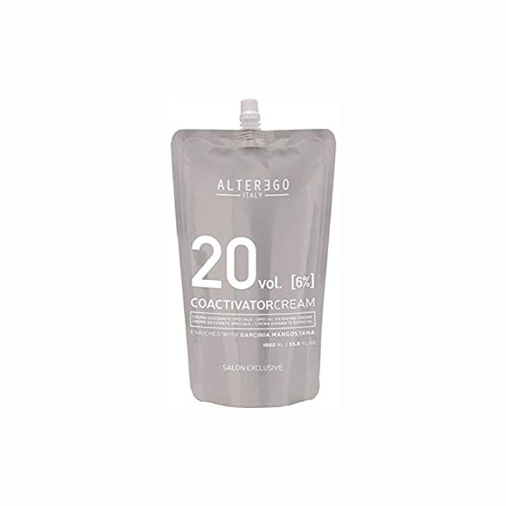 Alter Ego Coactivator Cream Volume is verrijkt met een nieuwe generatie innovatieve, conditionerende, kationische stoffen. Dankzij de behandelende, aanvullende en verzachtende werking van de toegevoegde actieve bestanddelen, kunnen maximale resultaten gegarandeerd worden. De zachte en rijke textuur van Alter Ego Coactivator Cream Volume verbetert en accentueert niet alleen kleurprestaties maar ook bleekprestaties van de haarverf waarmee de crème wordt gemengd. De oxiderende crème is gemakkelijk te mixen met de benodigde haarverf. Alter Ego Coactivator Cream Volume bevat waterstofperoxide op 10/20/30/40 volume.