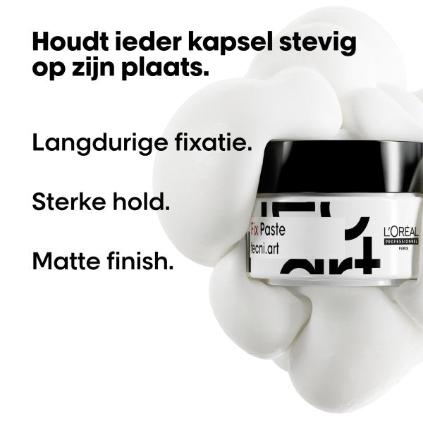 Een stylingpaste die het haar de perfecte fixatie geeft. L'Oréal Professionnel Tecni.ART Fix Paste is de ultieme stylingpaste voor de 'high roller'. Het zorgt voor een extra finishing touch. . Met deze paste zal het haar heel de dag mooi in model blijven met een fijne textuur.