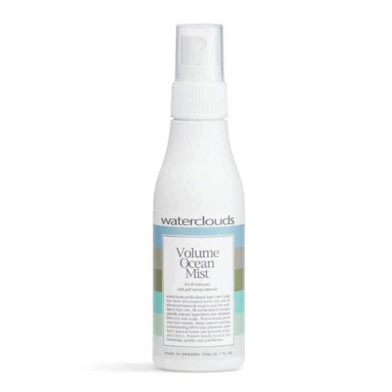 Waterclouds Volume Ocean Mist is een spray op basis van zout water welke definitie en langdurig volume aan het haar geeft. Deze frisse spray bevat zee mineralen die het haar voeden en versterken. Het haar voelt dikker en stugger aan en is makkelijk in model te brengen, daarnaast bevat deze spray een UV-filter. Met deze spray is een beach look makkelijk te creëren. Waterclouds Volume Ocean Mist bevat geen parabenen en de verpakking is biologisch afbreekbaar. Deze spray is geschikt voor alle haartypen.