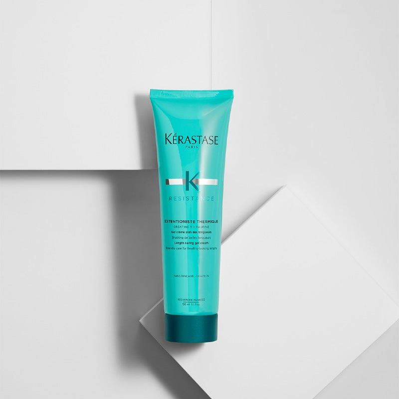 Kérastase Resistance Extentioniste Thermique Hittebeschermer voor Sterker en Langer Haar is een blow-dry créme die het haar beschermt tegen hitte van stylingtools tot 230 graden, daarnaast zal het breken van het haar worden verminderd. Hierdoor zal het haar langer worden en gezonder aanvoelen. Het melkachtige serum is verrijkt met Glaçage Thermo-Seal, Creatine R en Taurine die het haar van binnenuit versterken en de oppervlakte verzegelen voor optimale gladheid. Met dit product zal het haar langer en gezonder groeien, ook in combinatie met het gebruik van styling tools. Wanneer je de producten uit de Kérastase Résistance Extentioniste lijn gebruikt zal het haar tot wel 4 cm groeien in 3 maanden.