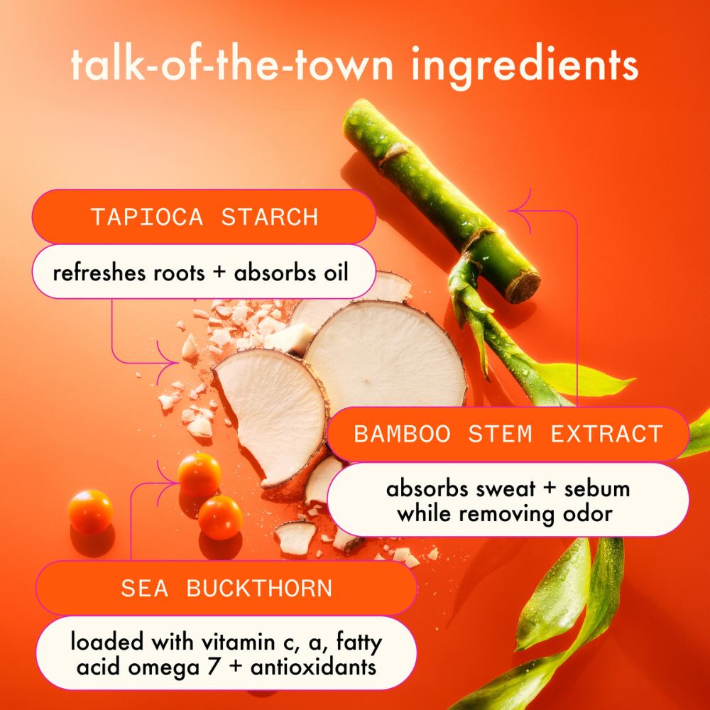 Deze droogshampoo is verrijkt met ingrediënten zoals tapiocazetmeel en bamboe-extract, die overtollige olie effectief absorberen en geurtjes verwijderen, waardoor je haar fris aanvoelt alsof het net gewassen is.