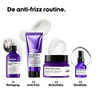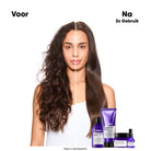 Het haar voelt zijdezacht, gehydrateerd en glad aan met een directe, stralende glans. Pluis wordt zichtbaar verminderd en het haar behoudt een gecontroleerd, soepel volume.