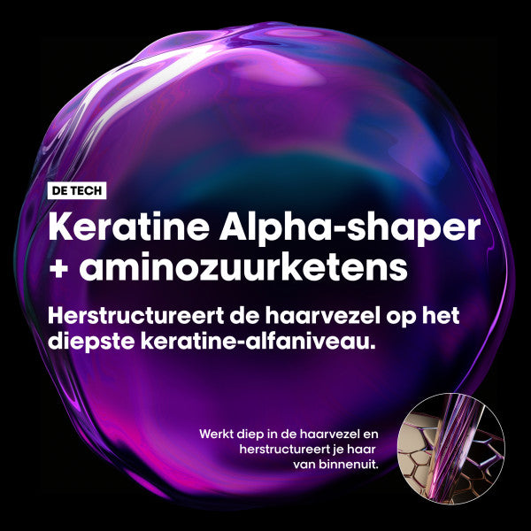 L'Oréal Professionnel Keratin Alpha Sleek Shampoo is een professionele shampoo met een luxueuze, ultraromige textuur die het haar zacht reinigt en tegelijkertijd hydrateert en verzacht. De formule biedt directe glans en helpt pluis en ongewenst volume zichtbaar onder controle te houden, waardoor het haar gladder en beter handelbaar aanvoelt vanaf de eerste wasbeurt.