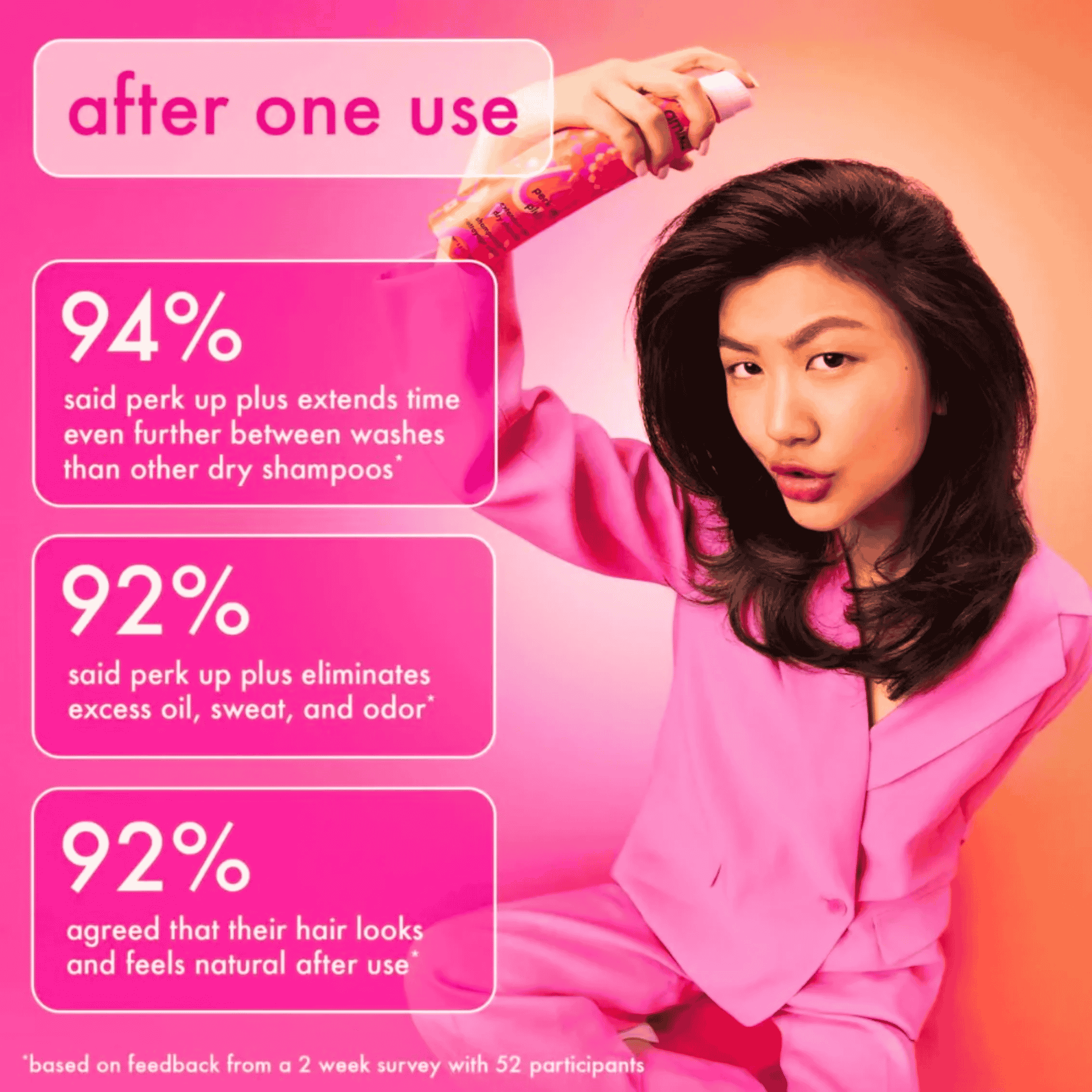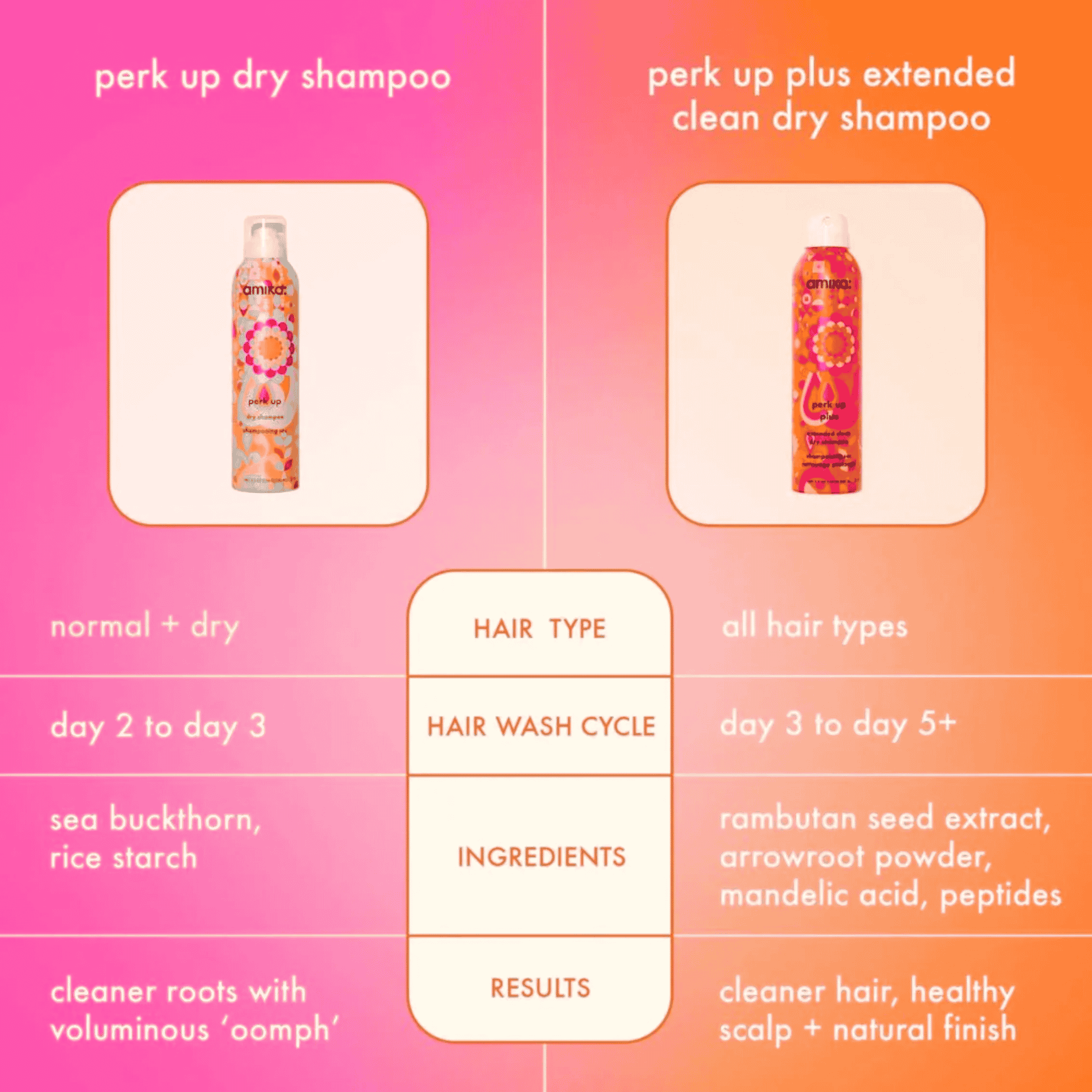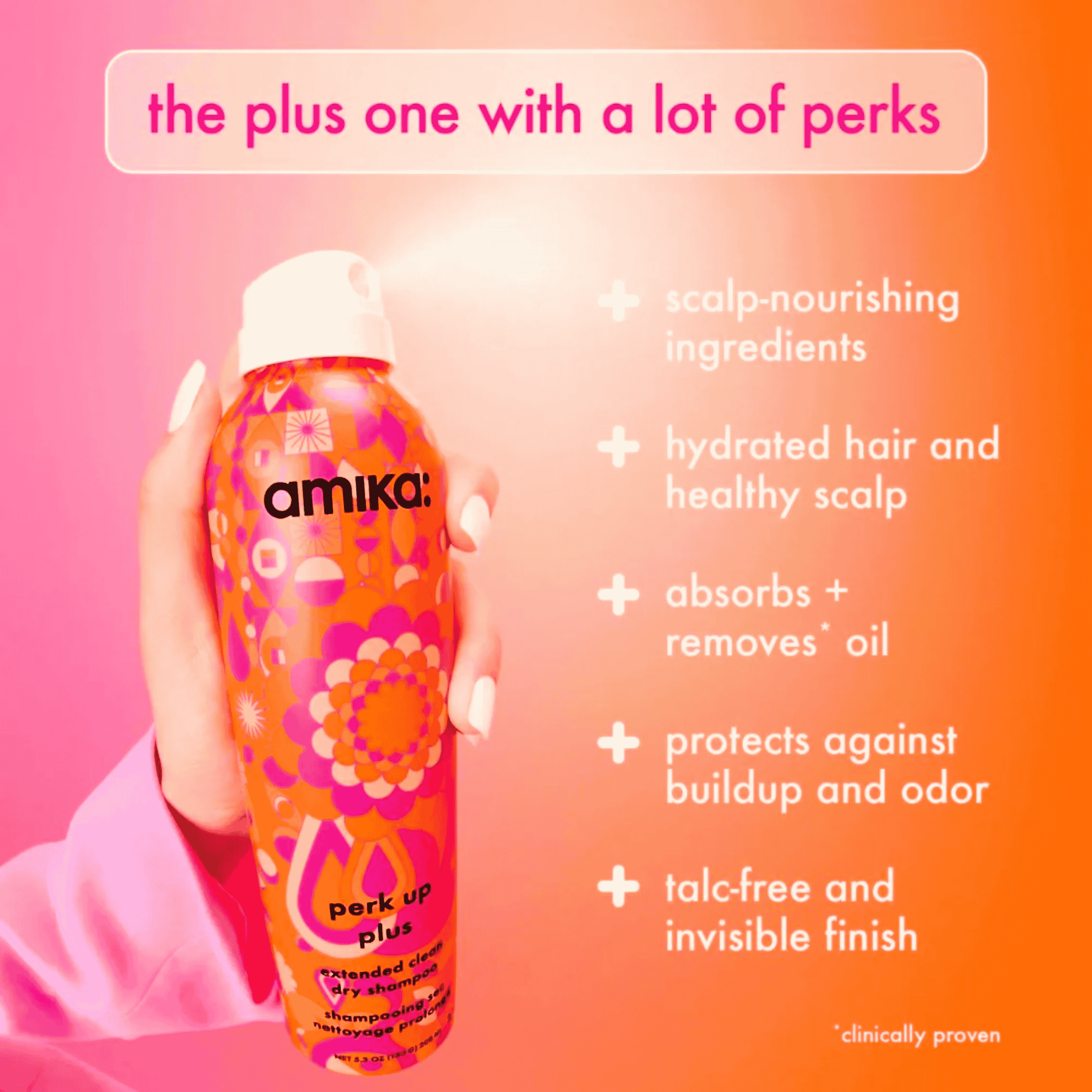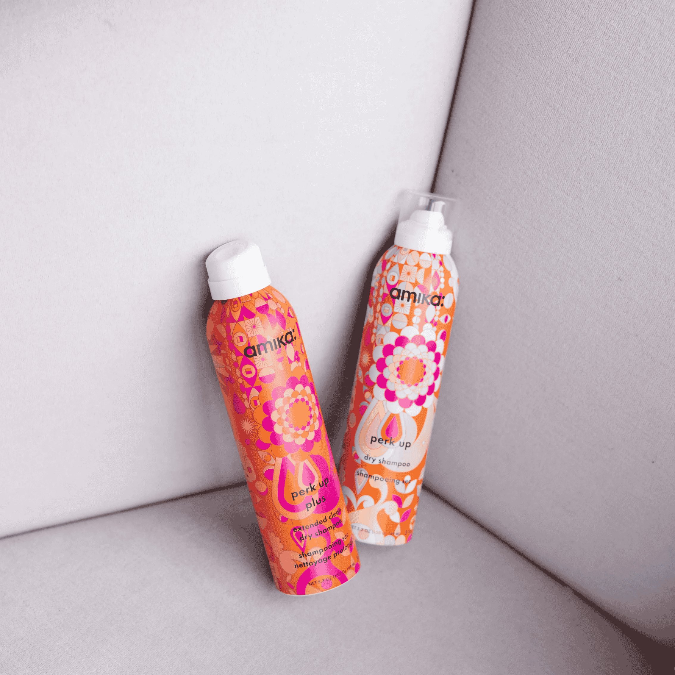 Verleng de tijd tussen de wasbeurten door en verfris jouw hoofdhuid en haar met de amika perk up plus extended clean dry shampoo!
