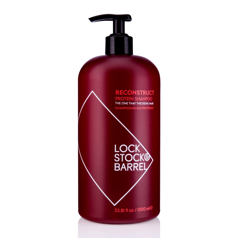 Lock Stock & Barrel Reconstruct Protein Shampoo is een echte aanbeveling voor fijn, dunner wordend haar. Door de bijzondere samenstellingen van onder andere speciale eiwitten en Panthenol (vitamine B5), heeft de Reconstruct Protein Thickening and Strengthening Shampoo een formule die helpt met de opbouw, en tevens de reiniging van het haar. Door de unieke formule van krachtige verzorgende ingrediënten is het haar verzorgd zonder te verzwaren en gaat het haarbreuk tegen.