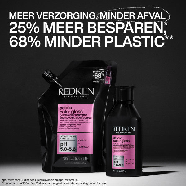 De Redken Acidic Color Gloss Shampoo is de sleutel tot het behouden van een levendige haarkleur met een ongeëvenaarde glans. Nú verkrijgbaar in een handige en voordelige refill verpakking. Deze professionele formule is ontworpen om semi-permanente en permanente haarkleuren te beschermen en te verlengen, terwijl het haar tegelijkertijd wordt verzorgd. Het biedt een langdurige kleurlevendigheid en een spectaculaire glans, waardoor je het salonresultaat eenvoudig thuis kunt verlengen.
