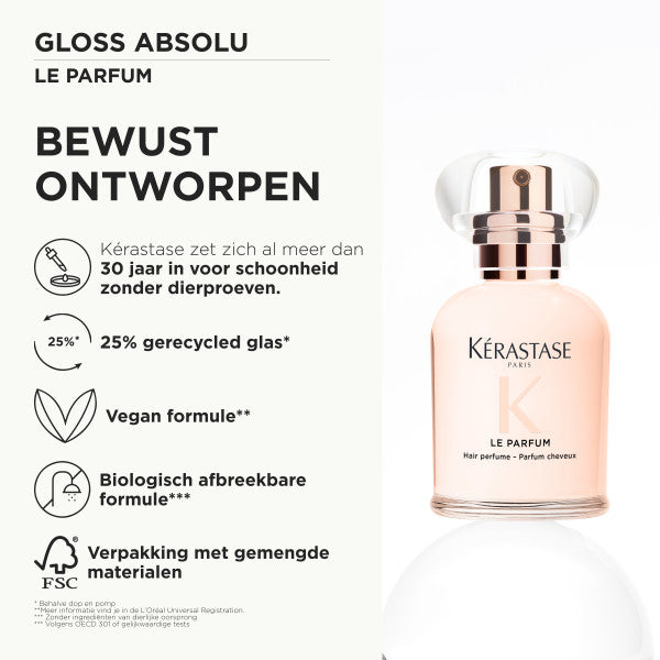 Je haar wordt subtiel geparfumeerd, voelt zacht en fris aan en krijgt een verfijnde, langdurige geur. Gloss Le Parfum laat een onvergetelijke indruk achter en tilt je zelfvertrouwen naar een hoger niveau.