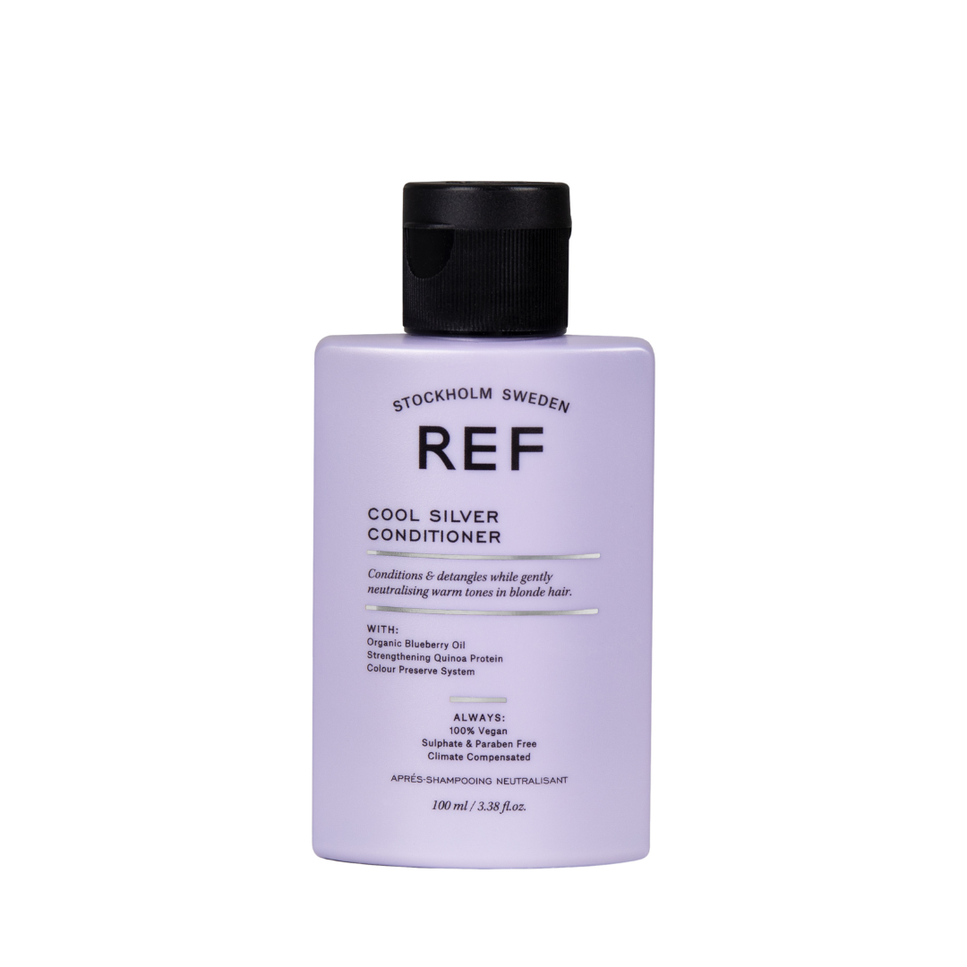 REF Cool Silver Conditioner is een rijke conditioner met violet pigmenten. Deze pigmenten zorgen ervoor dat ongewenste geel of koperkleur bij blond haar en door de zon gebleekt haar geneutraliseerd worden. Daarnaast krijgt grijs haar een zilverkleurige gloed.