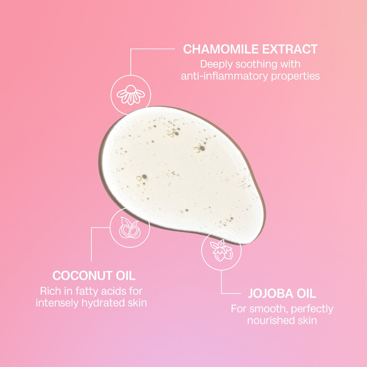 - Bevat kokosolie, jojoba-olie, kamille en vitamine E