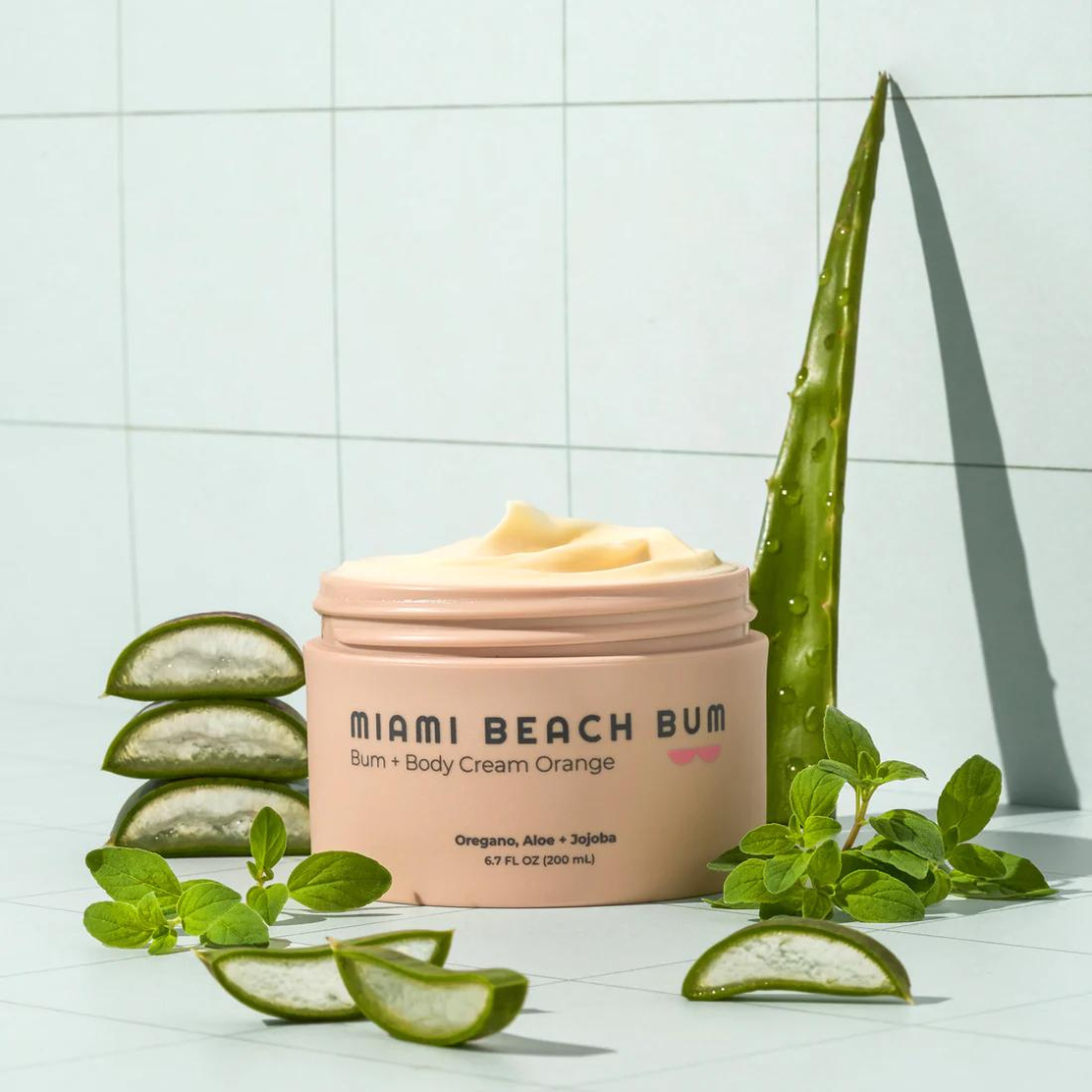 De Miami Beach Bum Bum + Body Cream Orange is geformuleerd om in harmonie te zijn met de natuurlijke flora van je huid. Met de kracht van microbiome-balancing oregano en barrier-fortifying aloe, is deze crème een snel absorberende traktatie voor je huid. Het verlicht en herstelt de gezondheid van je huid, terwijl het een zachte, niet-vette hydratatie biedt. Deze formule is vrij van synthetische geurstoffen, parabenen, sulfaten en andere schadelijke stoffen, waardoor het geschikt is voor alle huidtypes.