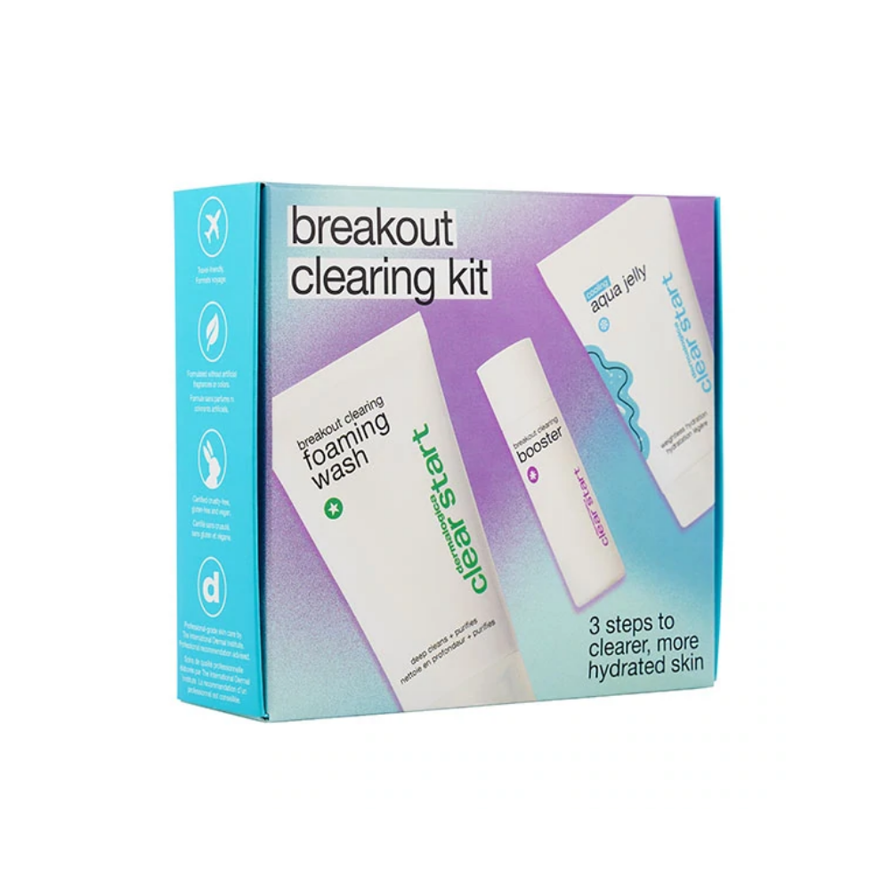 Dermalogica Breakout Clearing Kit bevat alles wat je nodig hebt om je huid te reinigen, onzuiverheden te behandelen en te hydrateren. Deze set is speciaal samengesteld om de jonge huid te reinigen, hydrateren en puistjes en onzuiverheden te verwijderen. Samengesteld met krachtige, maar milde ingrediënten zoals salicylzuur, tea tree olie, niacinamide en hyaluronzuur.