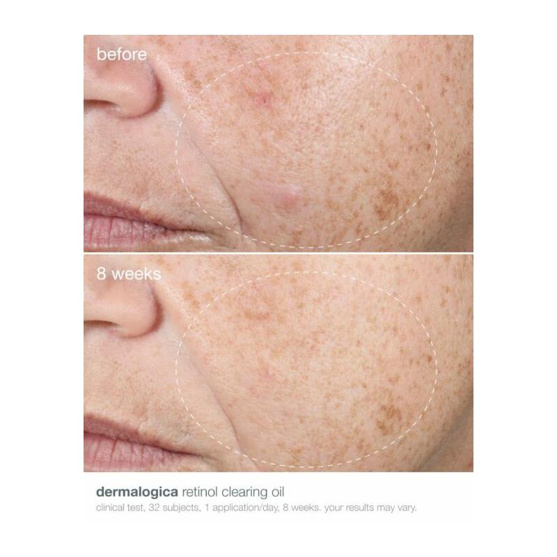 De Dermalogica Retinol Clearing Oil verbetert de elasticiteit van de huid, vermindert fijne lijntjes, rimpels, pigmentvlekjes en puistjes. De huid is gekalmeerd, gevoedt en beschermt.