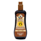 Australian Gold SPF15 Spray Gel met Bronzer is een zonnebrand die de huid sneller en dieper bruint. De zonnebrand spray wordt snel opgenomen en verzorgt de huid. De combinatie van Kakadu Plum, Aloë Vera, Vitamine E en Australische Tea Tree Oil zorgt voor een optimaal en langdurig resultaat. Australian Gold SPF15 Spray Gel met Bronzer beschermt de huid tegen UVA en UVB en biedt factor 10 wat een lage bescherming biedt. De Spray is tevens beschikbaar in SPF 10, 15 en 30.