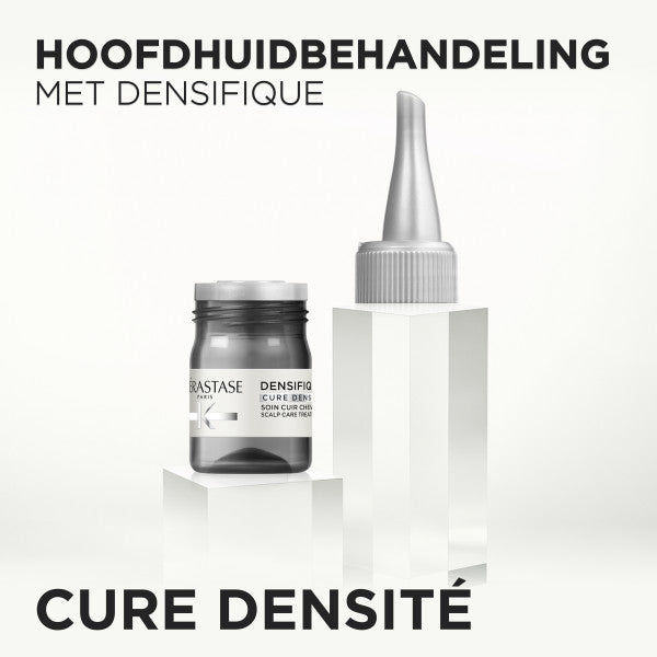 Kérastase Densifique Cure Femme is een intensieve hoofdhuidbehandeling speciaal ontwikkeld voor vrouwen met dunner wordend haar. Deze 3-maandenkuur helpt het haar zijn volume terug te krijgen, verbetert de haardichtheid en zorgt voor een voller en gezonder ogend kapsel. Vanaf de eerste toepassing voelt de haarvezel dikker aan en na 3 maanden gebruik is de haardichtheid aanzienlijk verbeterd.