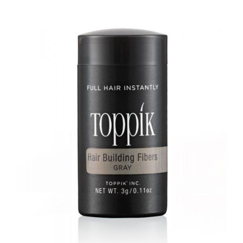Toppik Hairbuilding Fibers Gray is een innoverende poeder die ideaal geschikt is voor mensen met zichtbaar dunner wordend haar. Het is gemaakt van minuscule Keratine microvezels die in natuurlijk haar ook zitten verwerkt. Wanneer Toppik Hairbuilding Fibers Gray wordt aangebracht op het haar zullen duizenden minuscule micro haarvezels zich mengen met het eigen haar. Door middel van statische elektriciteit hechten de vezeltjes zich aan het eigen haar zodat ze op hun plaats blijven. De micro haarvezels blijven de gehele dag zitten, geeft niet af en schilfert of irriteert niet. Het is na fixatie bestand tegen wind, regen en transpiratie. Het is ook erg makkelijk uit te wassen met een shampoo. Toppik Hairbuilding Fibers Gray is verkrijgbaar in vier maten. Ook is het te mengen met andere kleuren van Toppik Hairbuilding Fibers om de ideale kleur te krijgen die bij het natuurlijke haar past.