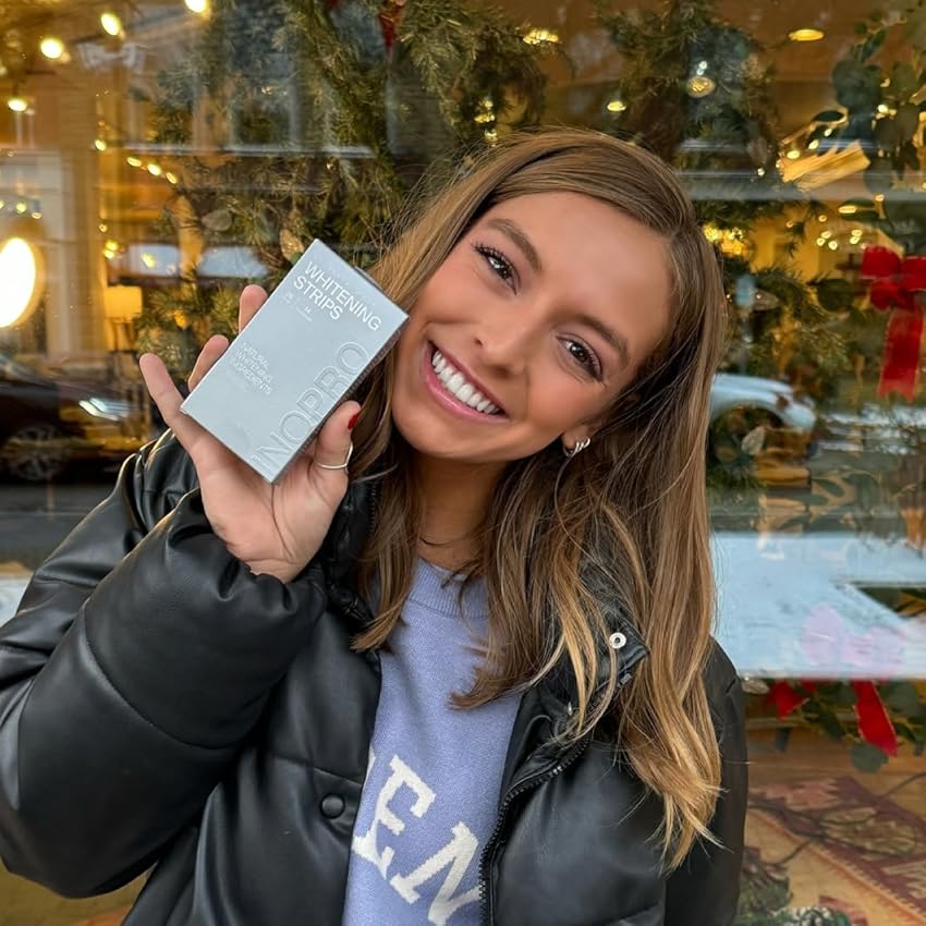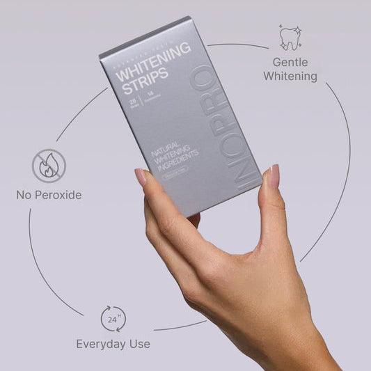 INOPRO Advanced Whitening Strips 14 Treatments zijn speciaal ontwikkeld voor gevoelige tanden en zorgen voor een natuurlijke, veilige whitening zonder peroxide. Dankzij actieve enzymen uit papaya (papain) en ananas (bromelain), in combinatie met kokosolie en citroenschilolie, worden hardnekkige vlekken van koffie, thee, wijn en tabak voorzichtig verwijderd zonder het glazuur te beschadigen. De strips zijn alcoholvrij, SLS-vrij en geschikt voor dagelijks gebruik. Met de meegeleverde shade guide volg je eenvoudig je voortgang richting een stralendere lach.
