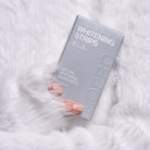 - Plaats één strip op de bovenste en één op de onderste tanden met de gelzijde naar de tanden gericht.