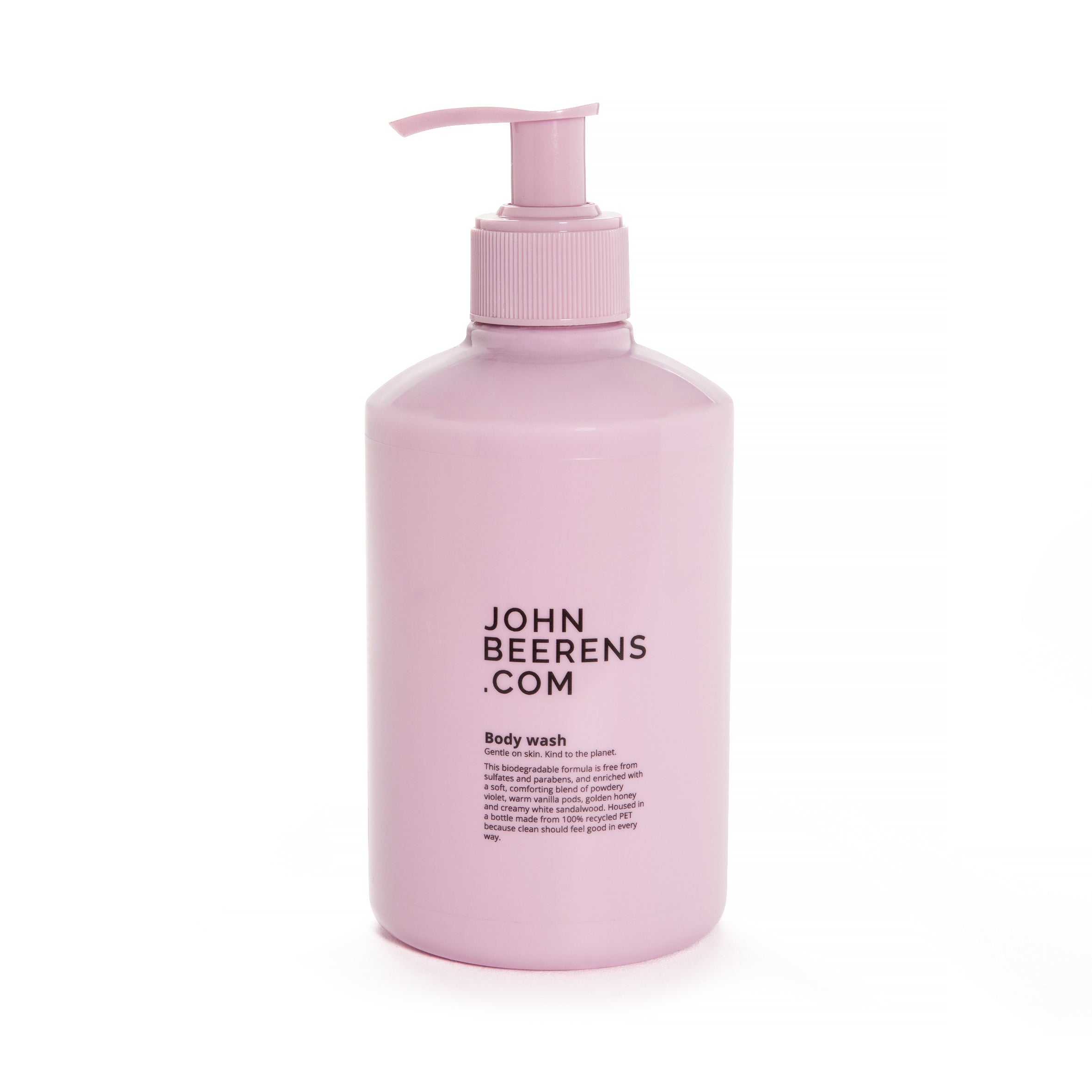 John Beerens Body Wash is een milde reiniger die zacht is voor de huid én vriendelijk voor de planeet. Deze biologisch afbreekbare formule is vrij van sulfaten en parabenen en verrijkt met een warme, levendige geurcombinatie van poederige viooltjes, romige witte sandelhout, gouden honing en zachte vanillepeulen. Zo verandert jouw dagelijkse douche in een puur verwenmoment.