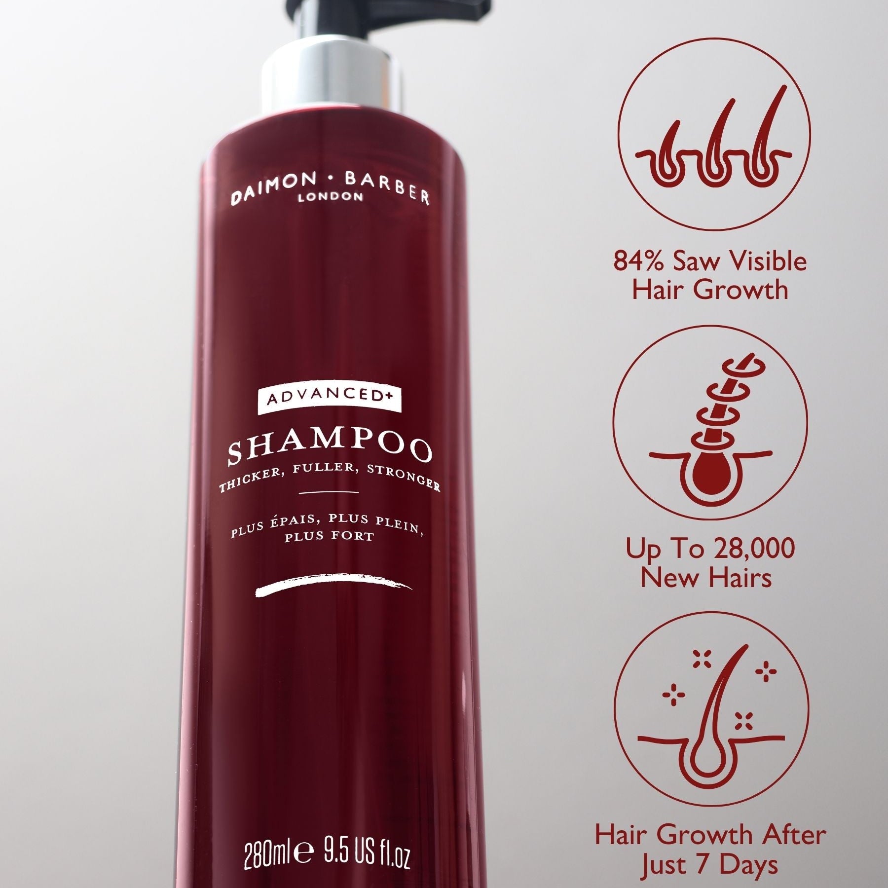 Daimon Barber Advanced+ Shampoo is een doeltreffende, wetenschappelijk onderbouwde shampoo die haaruitval helpt tegengaan en de haargroei stimuleert. De formule bevat krachtige ingrediënten zoals Biotinoyl Tripeptide-1 en Saccharide Isomerate, die inwerken op slapende haarfollikels en bijdragen aan voller, dikker en sterker haar.