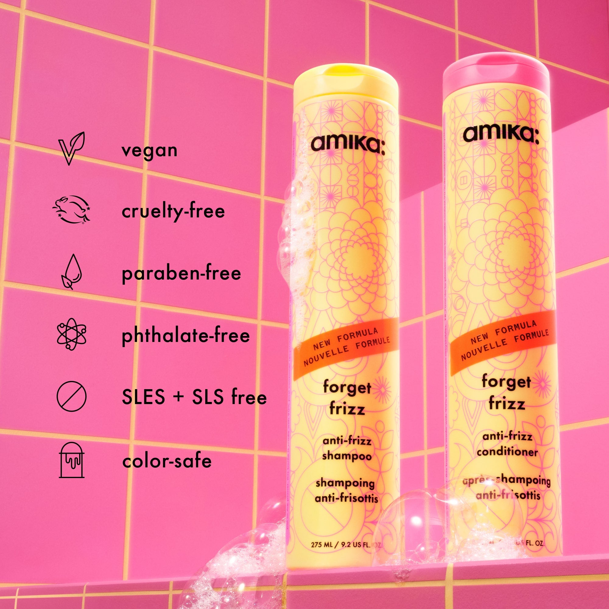 - Voor het beste resultaat: vervolg met de Amika Forget Frizz Anti-Frizz Conditioner.