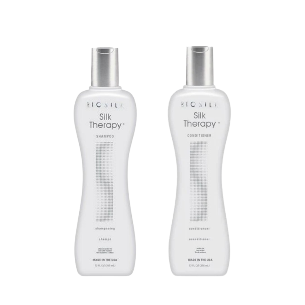 De Biosilk Silk Therapy Shampoo is een mildreinigende shampoo voor een zachte reiniging en fluweelzacht haar. De bijpassende Biosilk Silk Therapy Conditioner is een milde conditioner die hydraterend werkt en het haar een extra glans geeft!