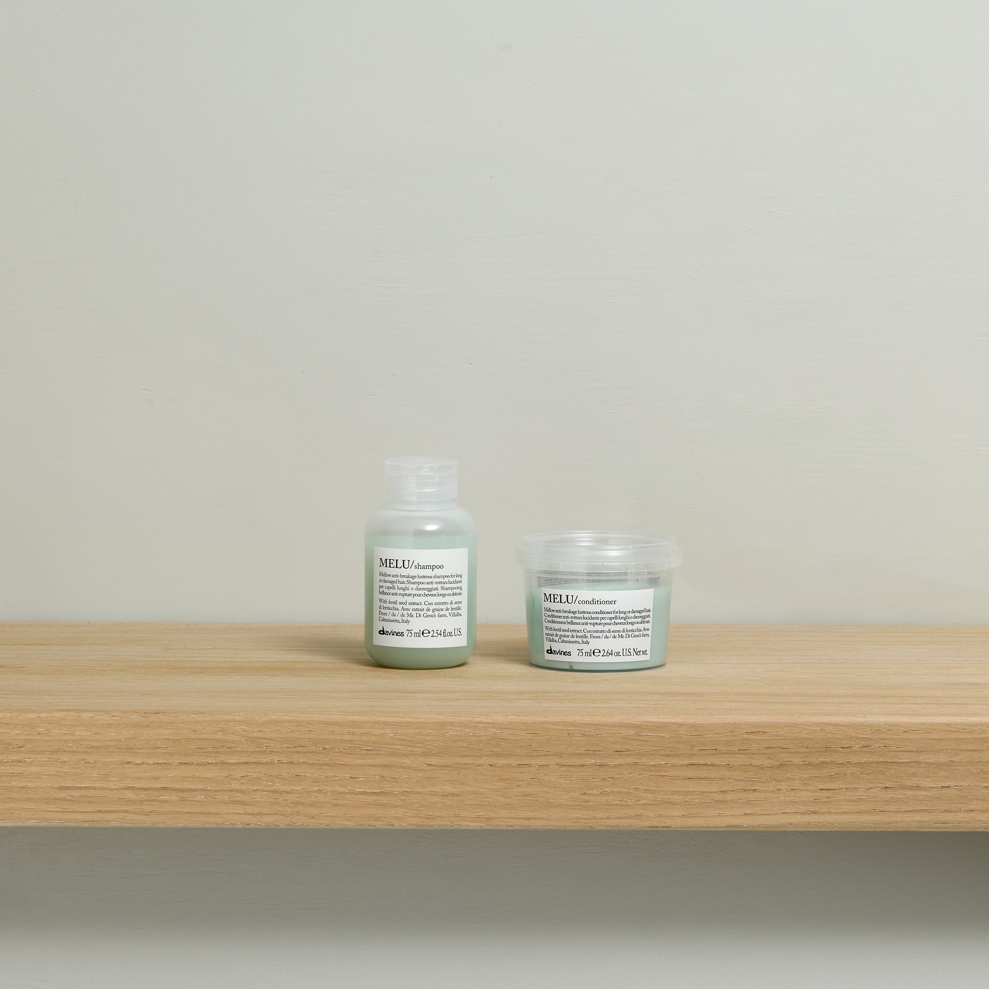 - Herhaal de shampoo-applicatie en breng dan Davines MELU Conditioner aan.