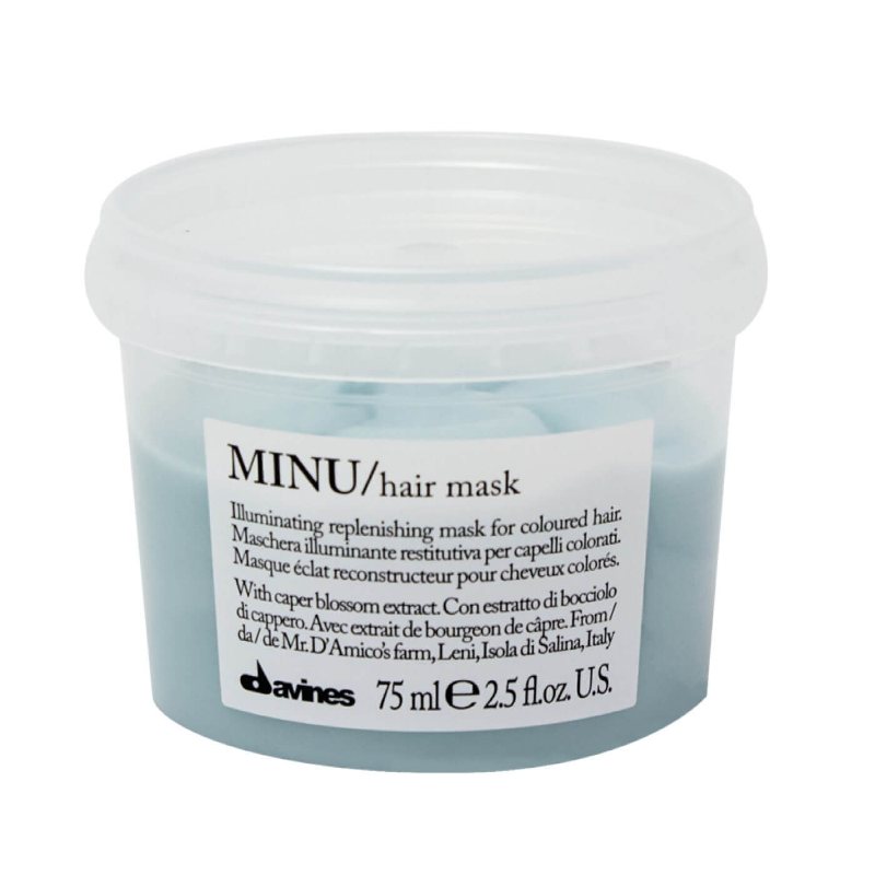 Davines Minu Hairmask is een herstellend masker dat het gekleurde haar extra glans geeft en intens voedt. Ideaal voor gekleurd haar. De formule is samengesteld om gekleurd haar diep te voeden, het zijdezacht te maken en het kleurbehoud te verlengen. Verzwaart het haar niet. De geur die de MINU producten kenmerkt heeft een frisse citrus (oranjebloesem) noot.