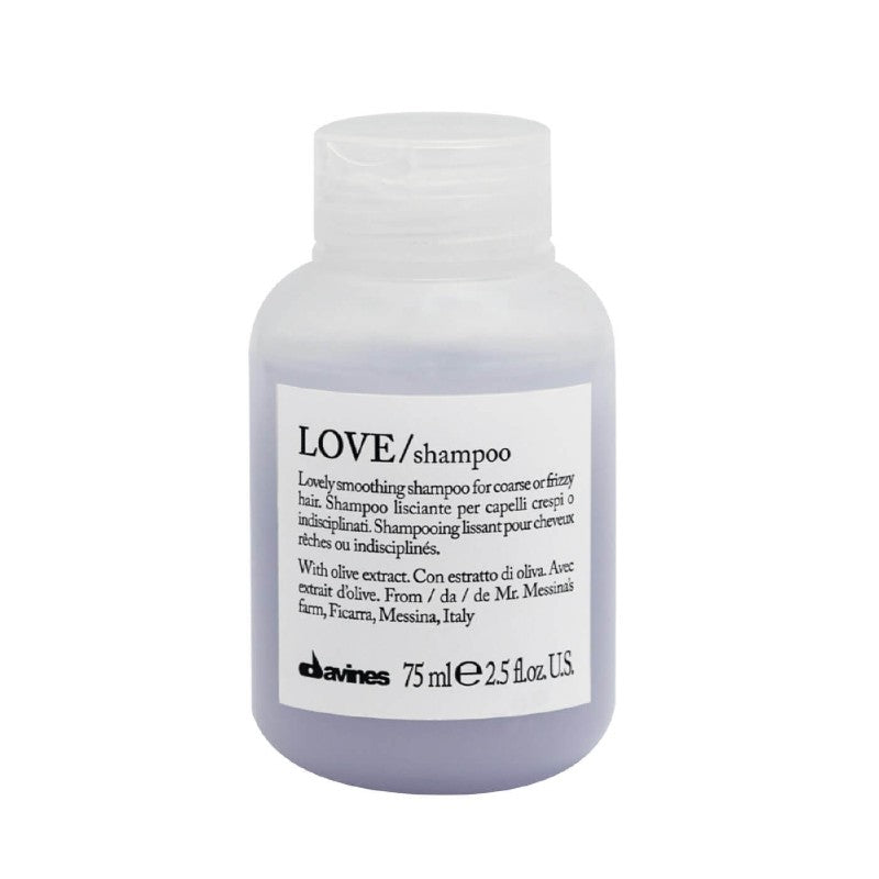 De Davines LOVE SMOOTHING Shampoo, een gladmakende shampoo voor kroezend of weerbarstig haar, die het haar zachtjes reinigt en glad maakt.