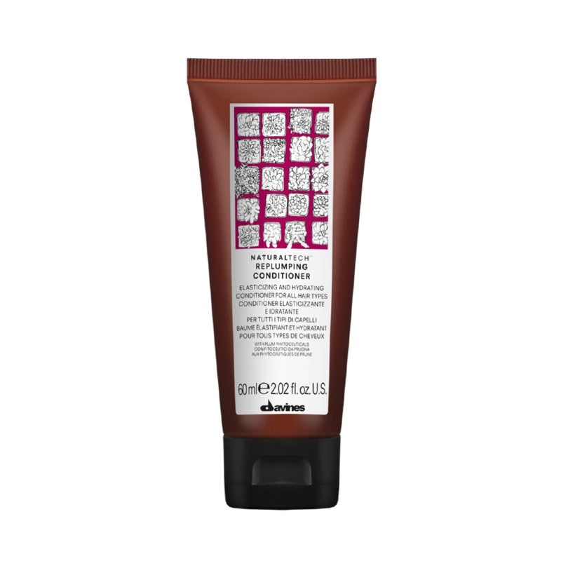 De Davines Replumping Conditioner geeft elasticiteit, hydratatie en beschermt de haarstructuur.