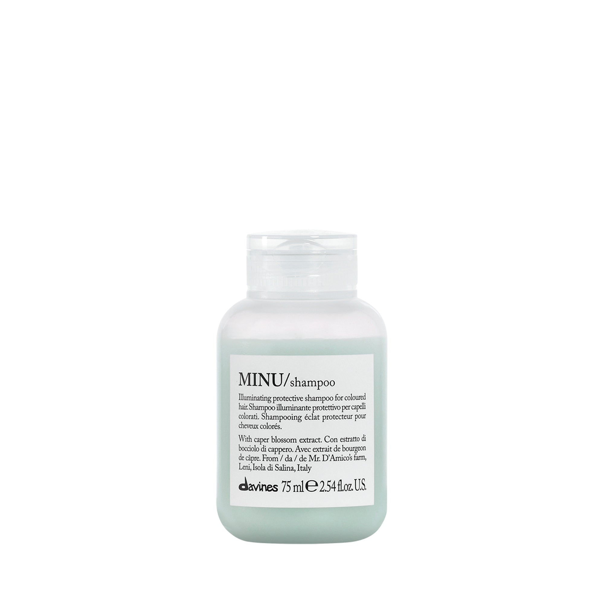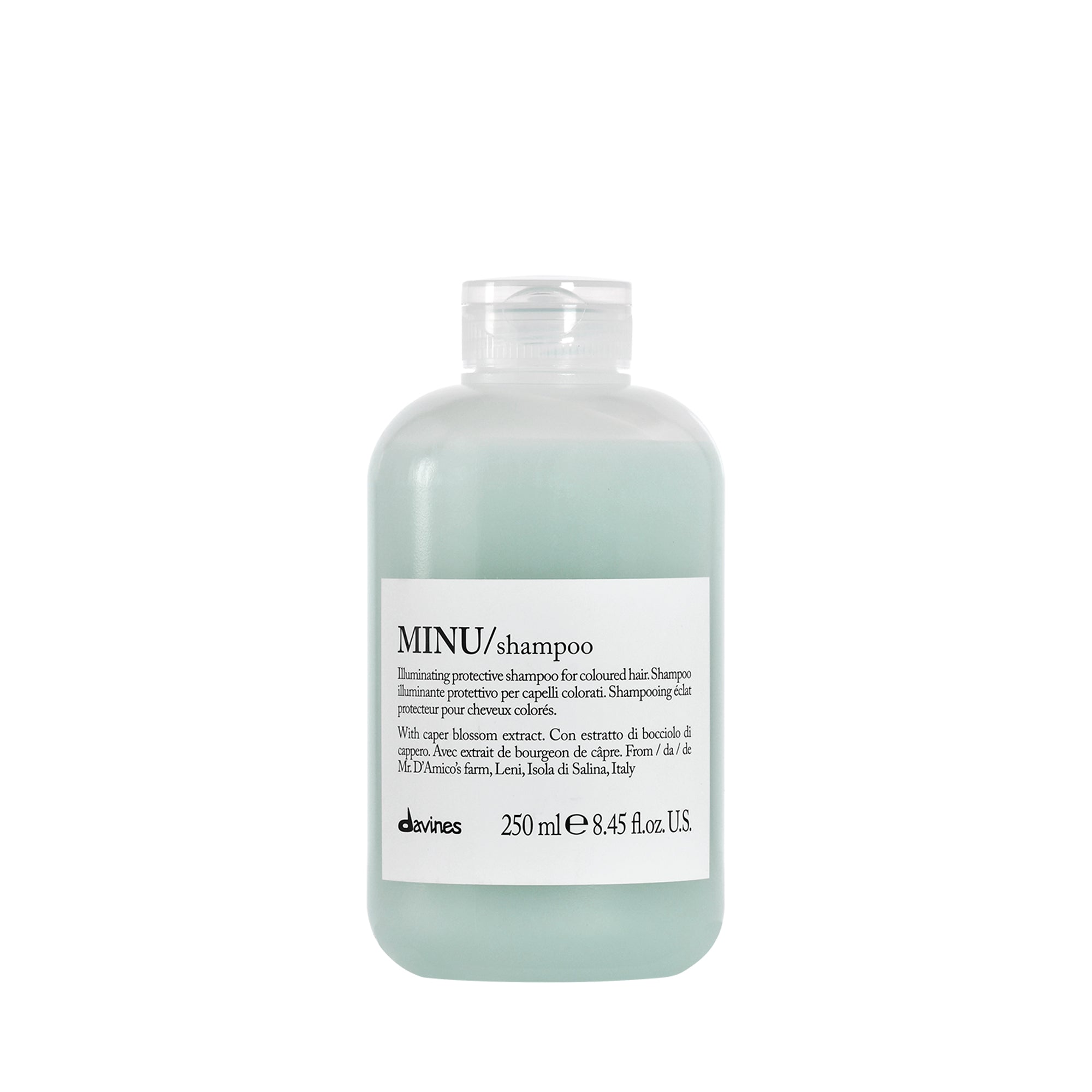De Davines MINU Shampoo is een beschermende shampoo die gekleurd haar een langdurige glans geeft. Met Salina Caper Bloesemextract – Slow Food Presidium. Bevat quercetine, een krachtige aminozuur met een beschermend effect op de haar- structuur en polyfenolen die de haarkleur behouden.