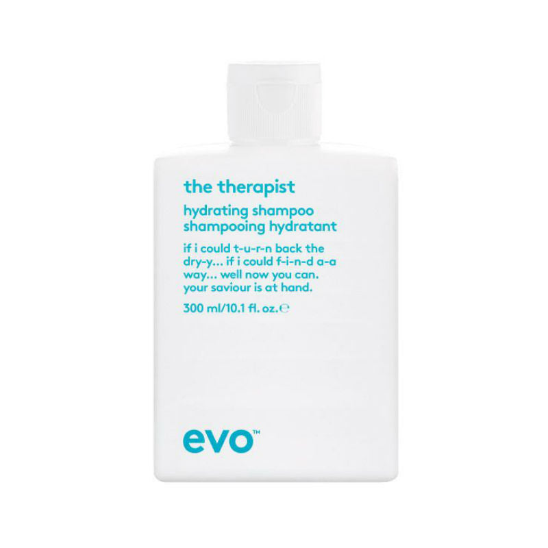 Evo The Therapist Hydrating Shampoo is speciaal ontwikkeld voor droog, pluizig en gekleurd haar die extra verzorging kan gebruiken. Deze intensief hydraterende shampoo verzorgt en versterkt het haar. De Evo The Therapist Hydrating Shampoo bevat geen Sulfaten en Parabenen, waardoor het haar op een milde wijze wordt gereinigd.