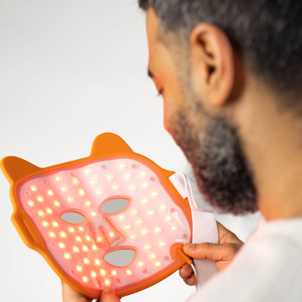 - Plaats het LED-masker op je gezicht en sluit de banden goed aan.
