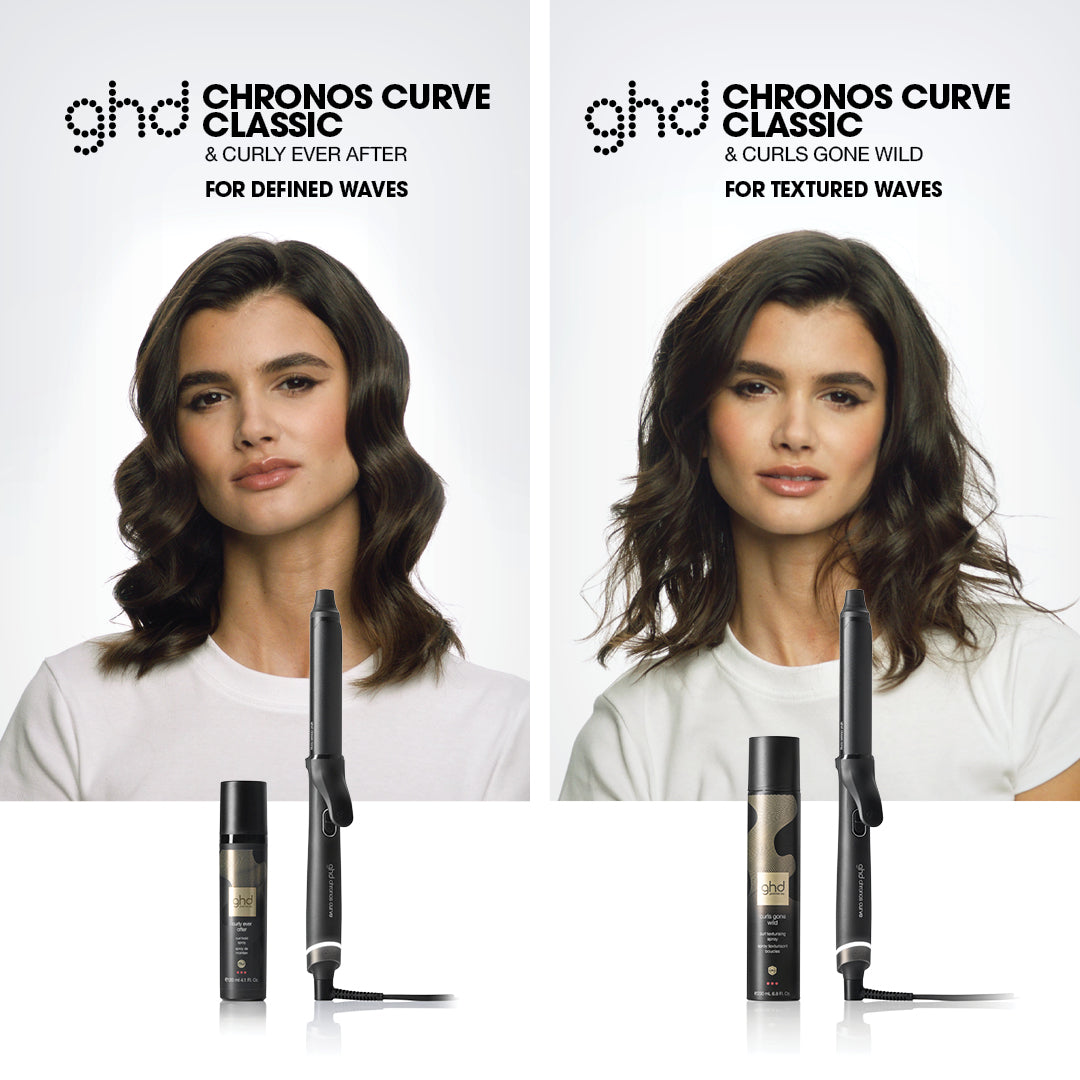 - Breng ghd Curly Ever After fixatiespray aan op droog haar voor hittebescherming en langdurige hold. Gebruik voor meer textuur ghd Curls Gone Wild krulspray.