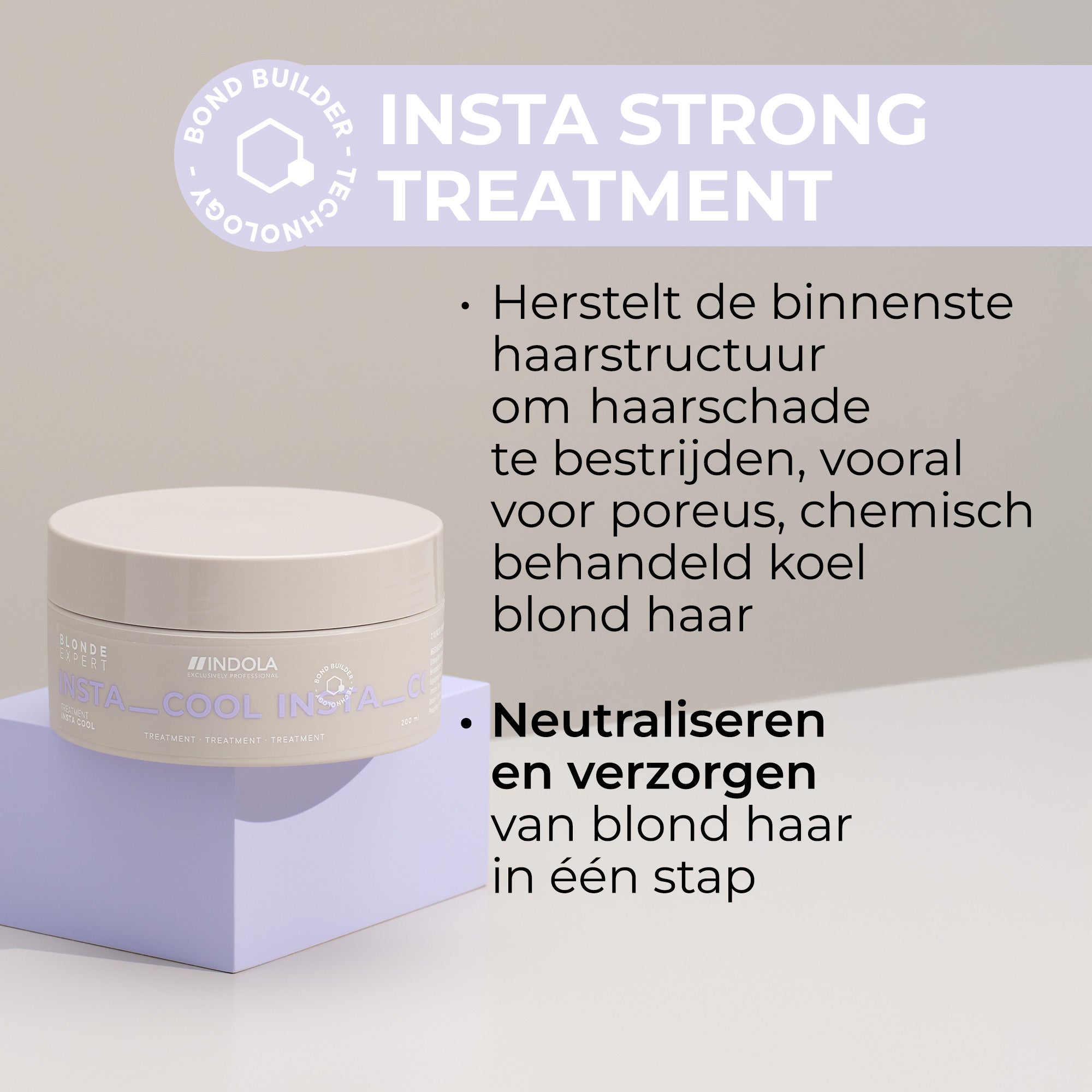 De Indola Blonde Expert InstaCool Treatment is dé oplossing voor blond haar dat extra verzorging en kleurcorrectie nodig heeft. Dit krachtige masker neutraliseert gele ondertonen en voedt het haar intensief in slechts één stap. Dankzij de geavanceerde formule met Hair Bond Technology+ wordt beschadigd haar hersteld, haarbreuk verminderd en de veerkracht en elasticiteit verbeterd. Ideaal voor blondines die hun kleur koel en fris willen houden, terwijl het haar sterk, zacht en gezond blijft.