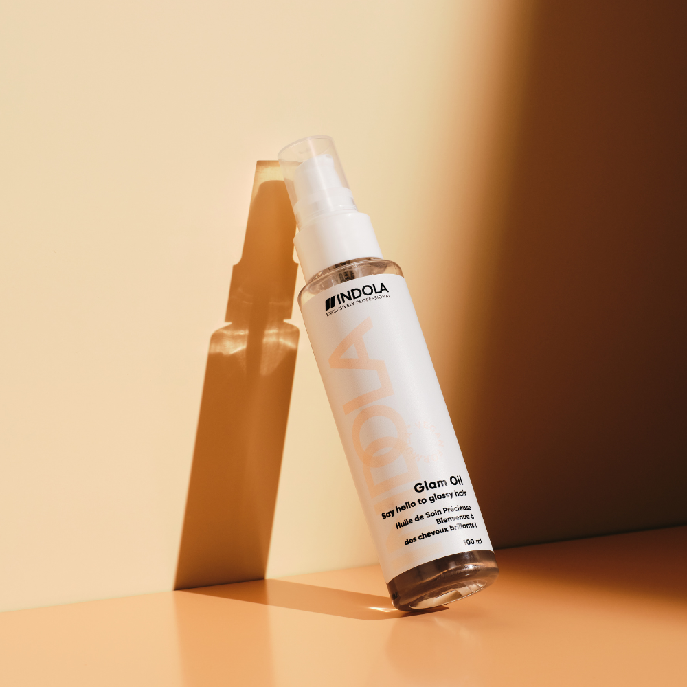 Indola Glamorous Oil zorgt voor zijdezachte, glanzende lokken en een vermindering van gespleten haarpunten tot wel 80%.